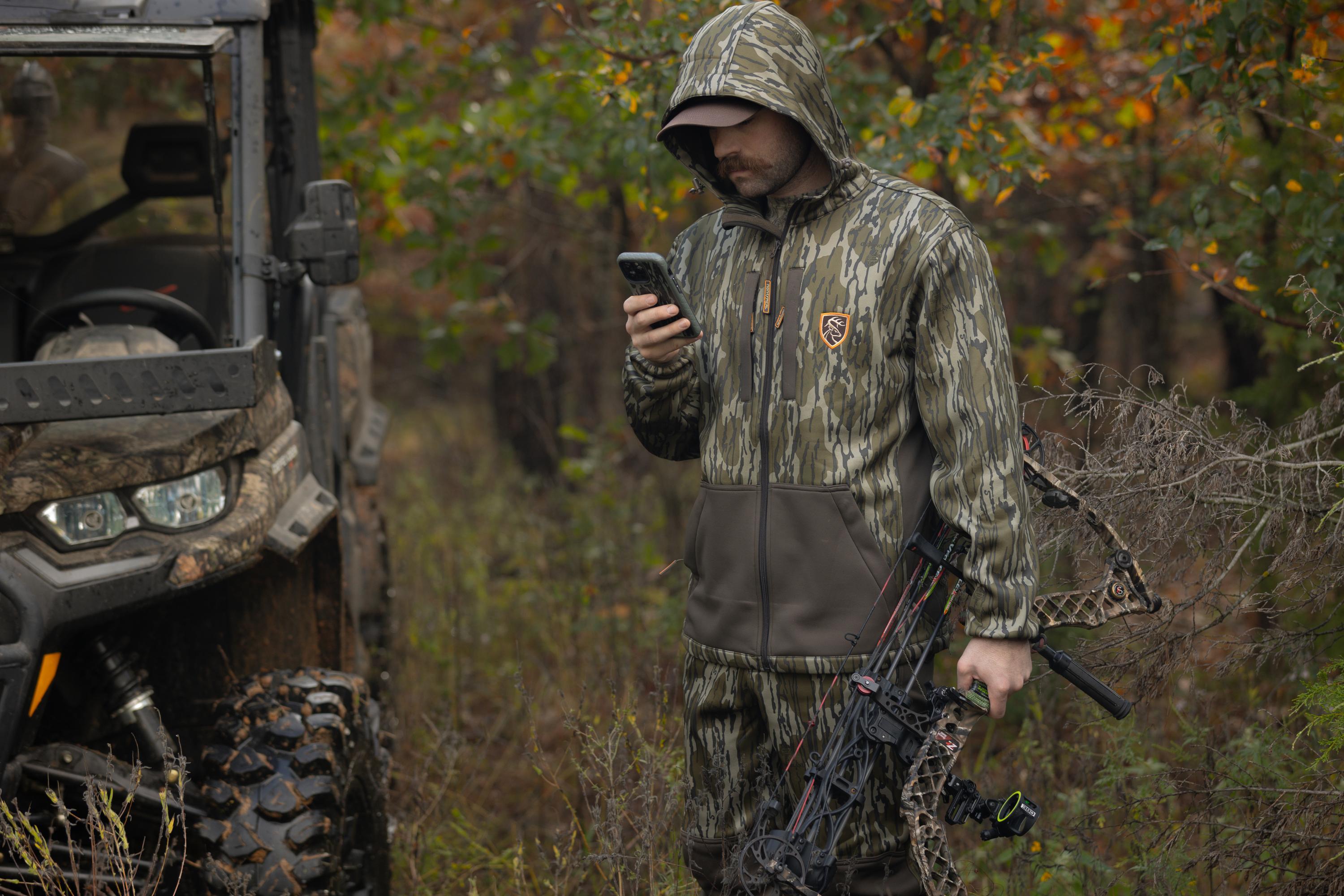 Comfort and protection in a roomy, mid-weight design. With an ultralight fleece backing, the soft shell fabric is silent and stretches easily as you draw your bow or shoulder your gun. The jacket includes a full zip, adjustable hood, vertical chest pockets, and lower zippered pouch pockets.